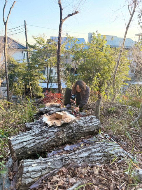 わざわざ裏山に椅子を担いで運び、使い道なく自分で座ってます笑。